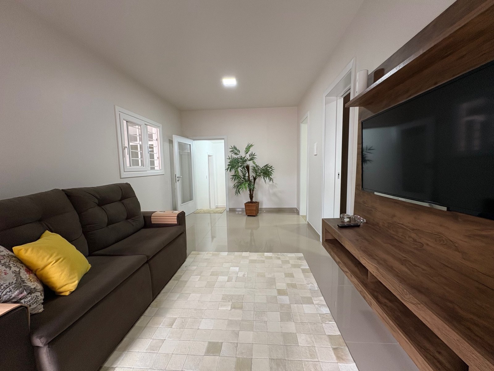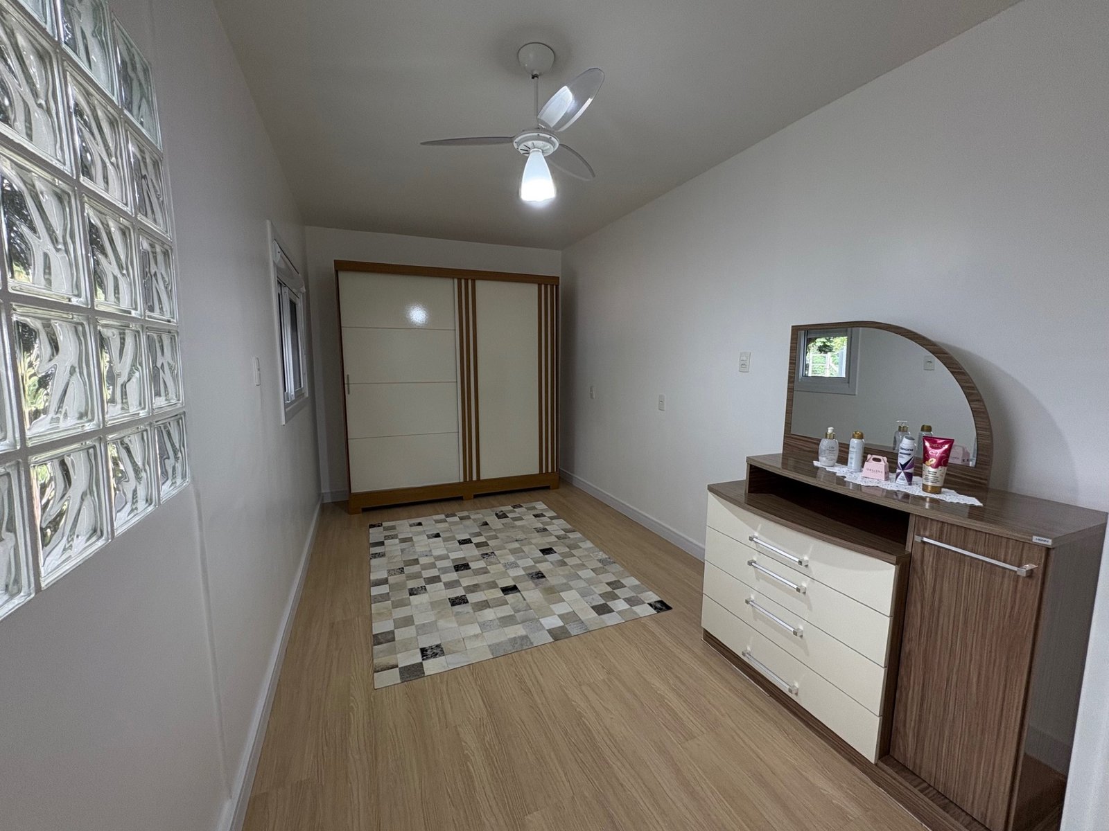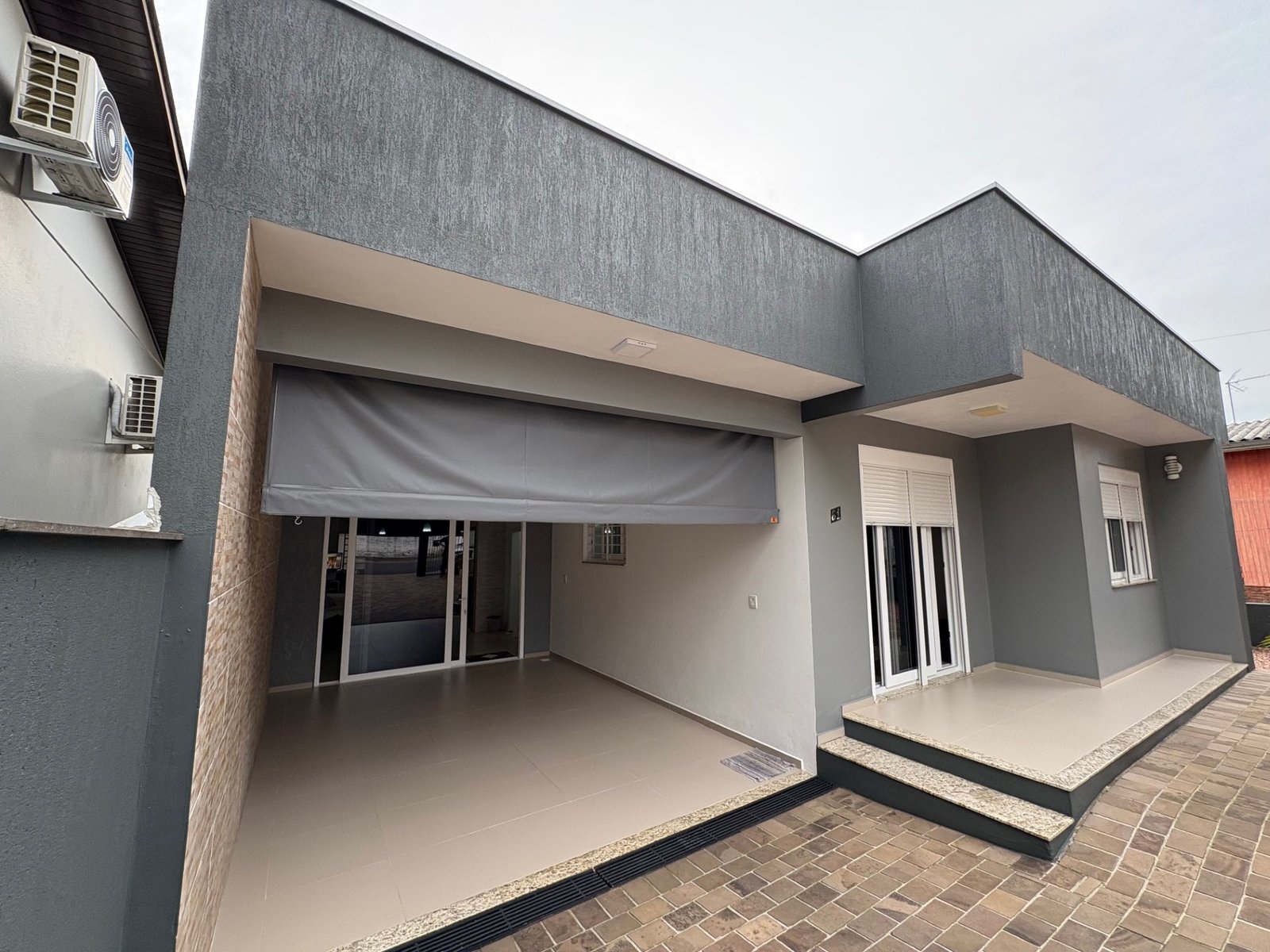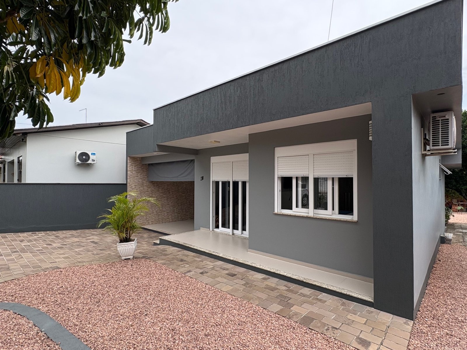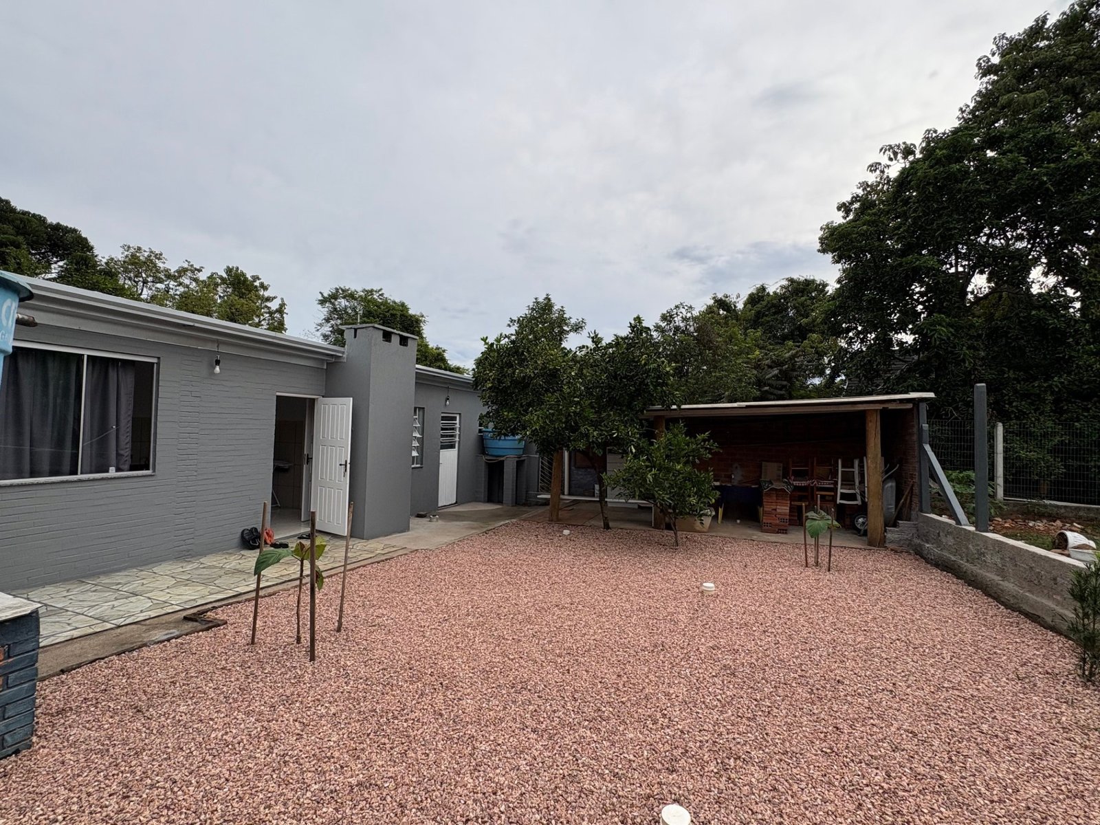 Um belo imóvel com 161, 51 m² de área construída, plano, de alvenaria, possui dois dormitórios, três banheiros, sala de estar, sala de jantar e cozinha integrados, depósito, lavanderia, churrasqueira, garagem.