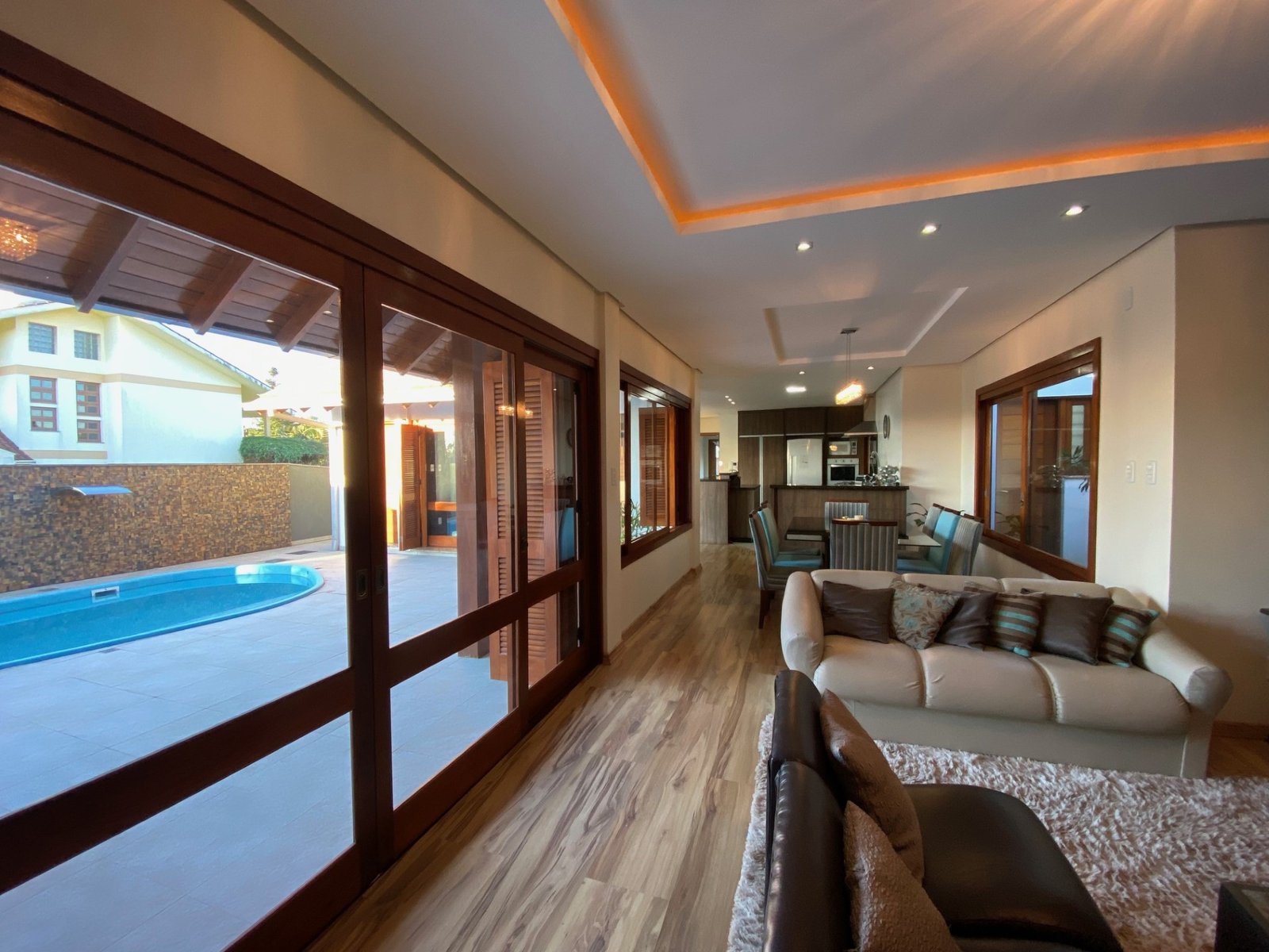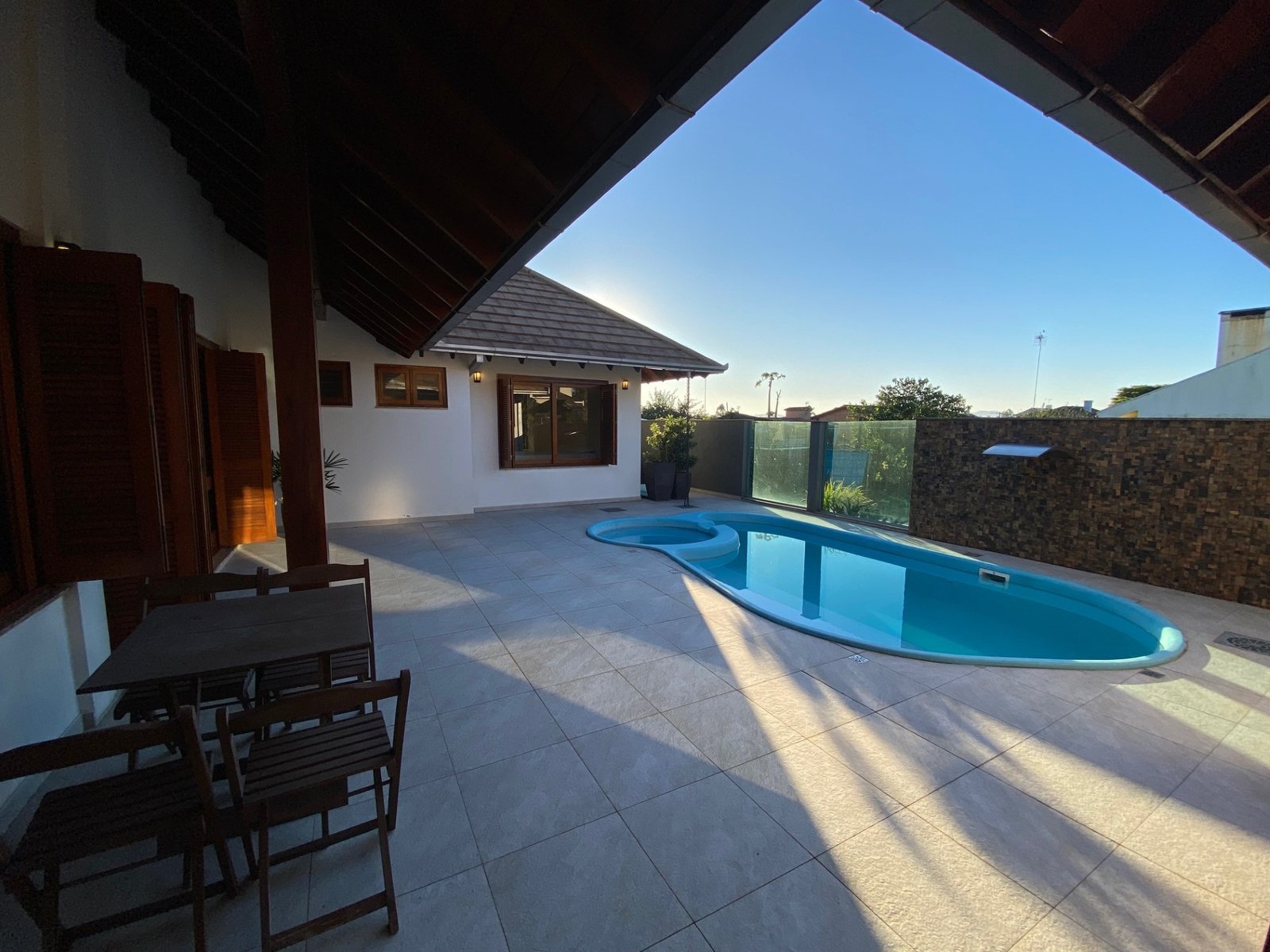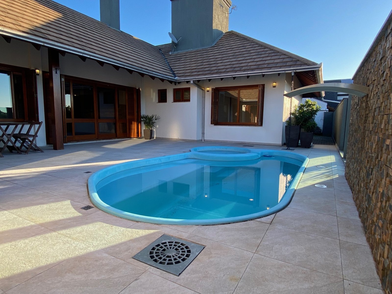 Residência plana sem escadas, com ótima localização no bairro 25 de Julho em Ivoti, possui uma sala de estar, sala de jantar, cozinha integrados, lavabo e despensa, com piso laminado, lindíssimos espaço gourmet e piscina.