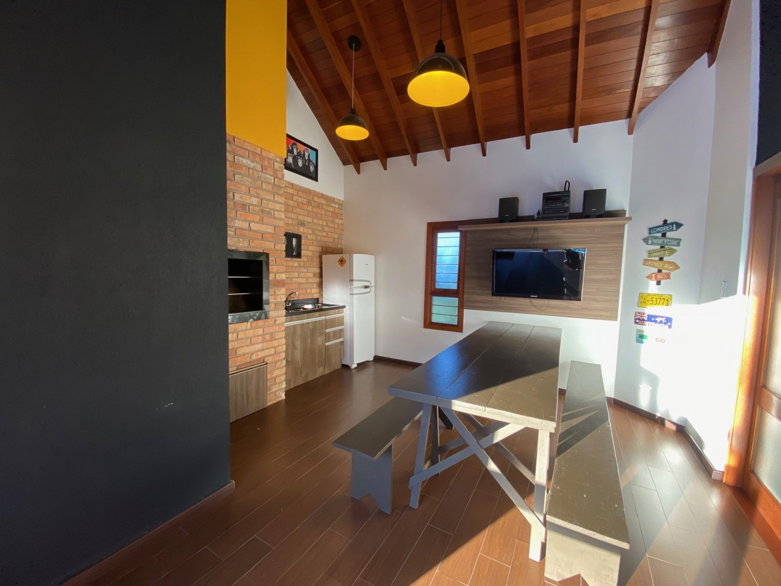 Três quartos sendo uma suíte com closet, a casa dispõe de área de serviço com lavanderia, e garagem para dois veículos.