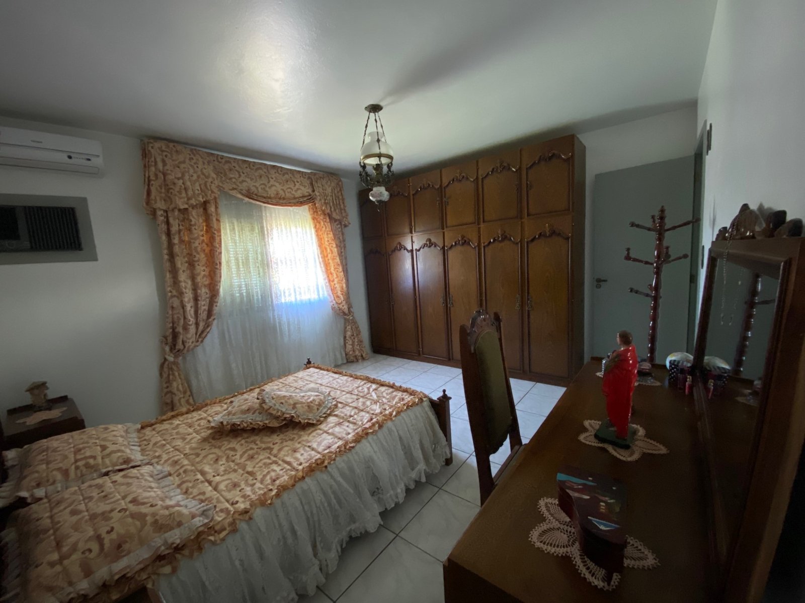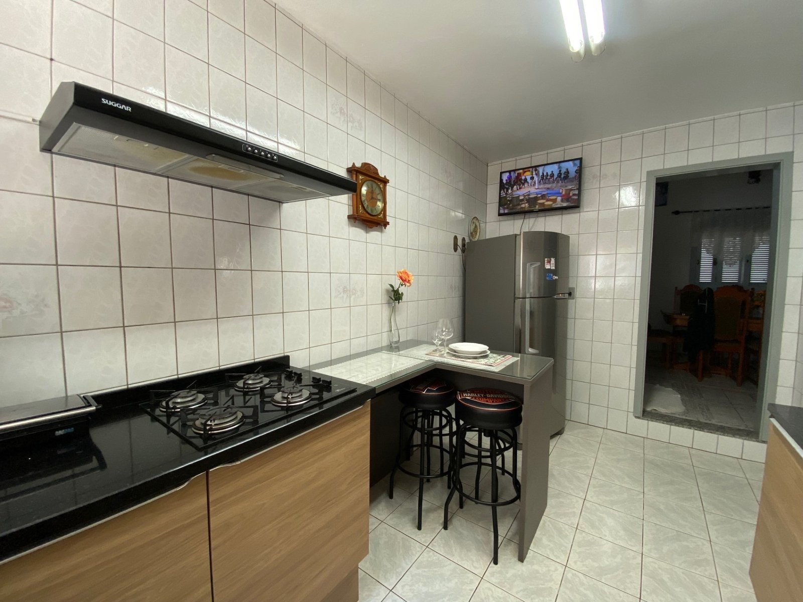 Residência de alvenaria com três dormitórios, dois banheiro, sala de estar, sala de jantar, cozinha, área de serviço.