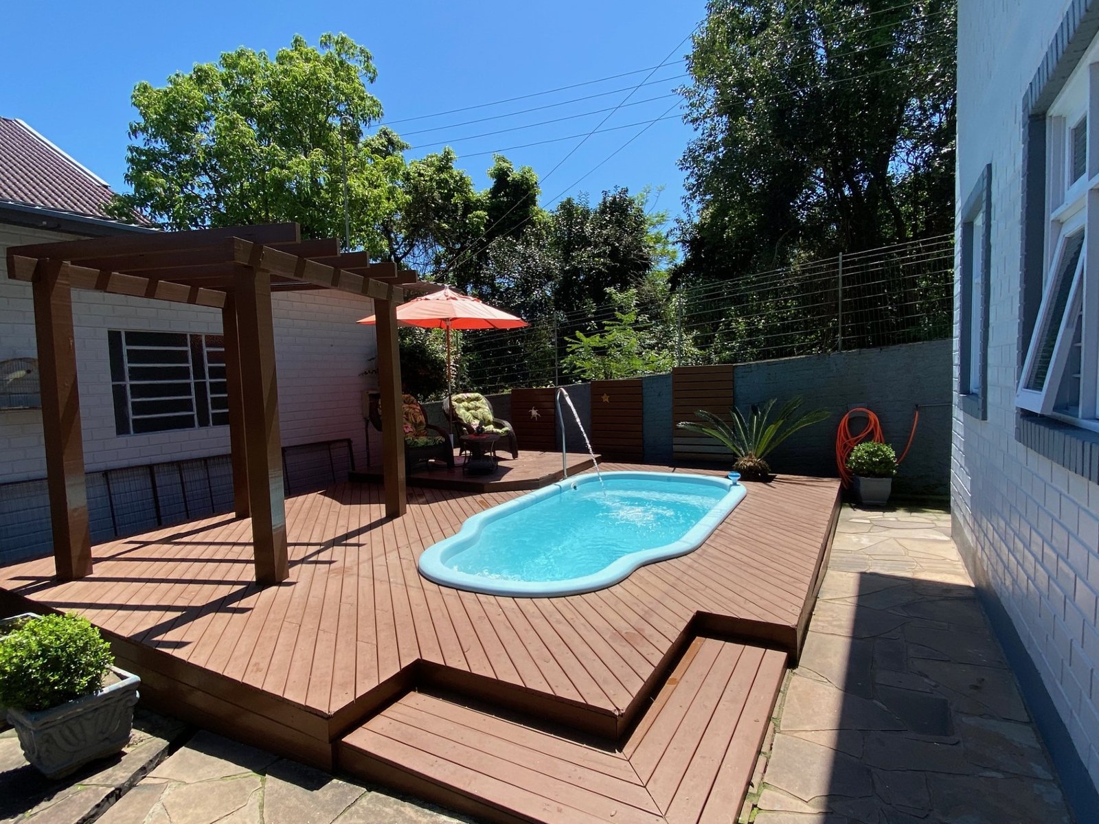Pátio com piscina, ótimo para curtir momentos de lazer com família.