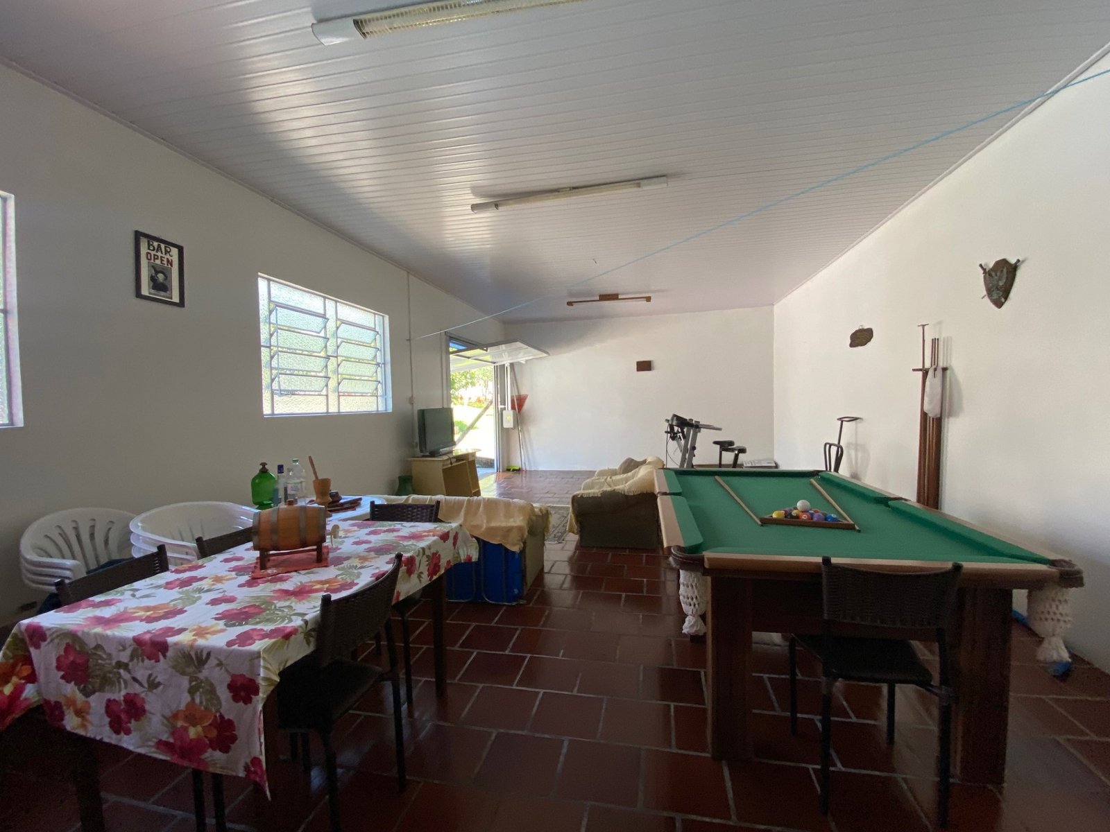 Um anexo (garagem), vaga para dois carros, composto por um banheiro, amplo espaço para eventos familiares.