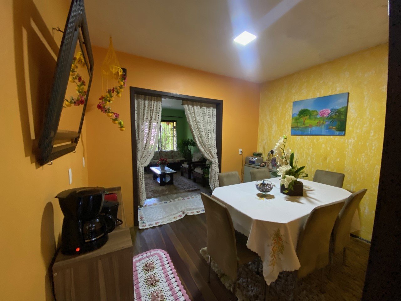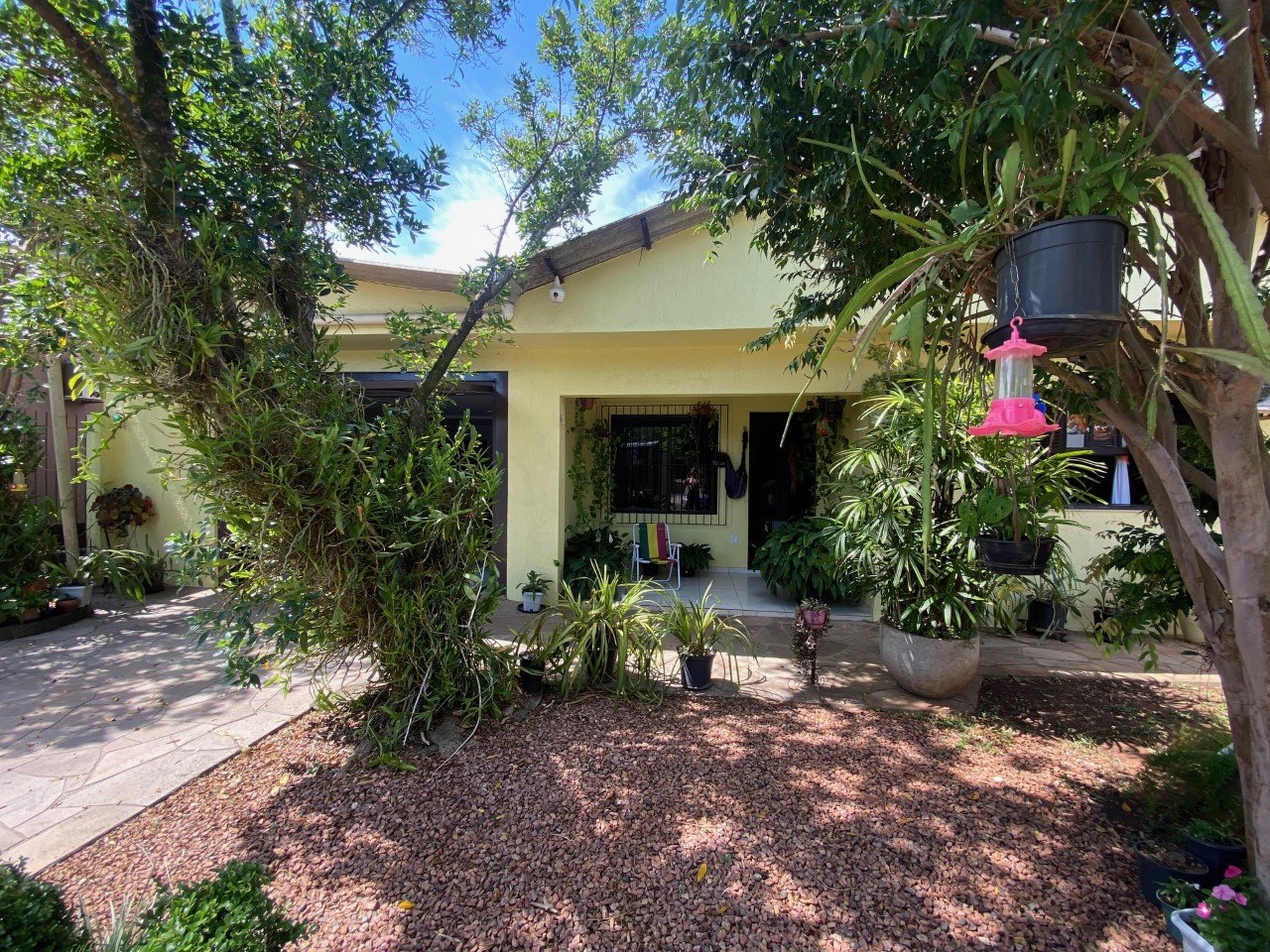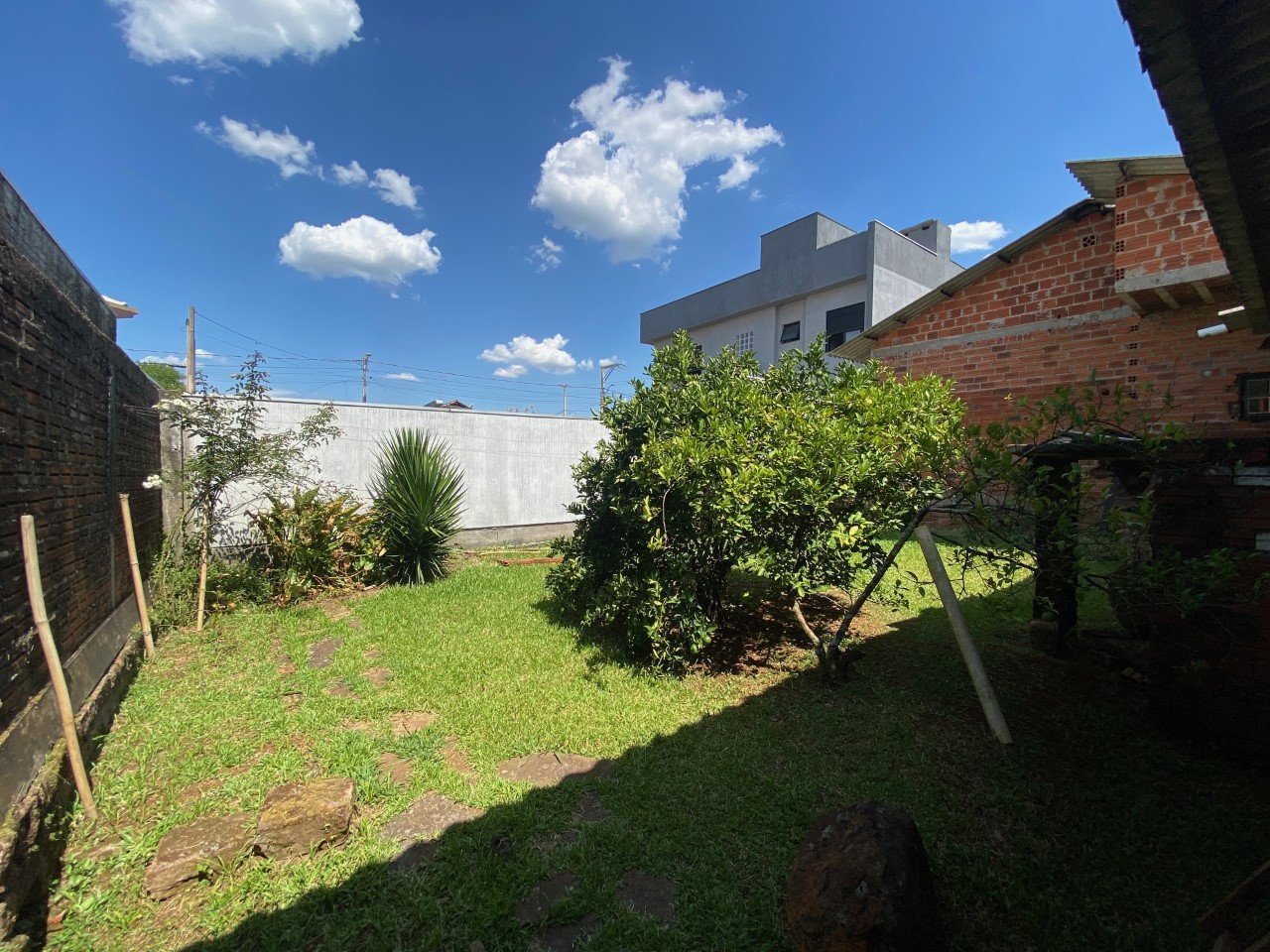 Bela residência em alvenaria, plana com 406 m² de terreno e 208,06 m² de área construída, composta por três dormitórios, cozinha, sala de estar e jantar, três banheiros.