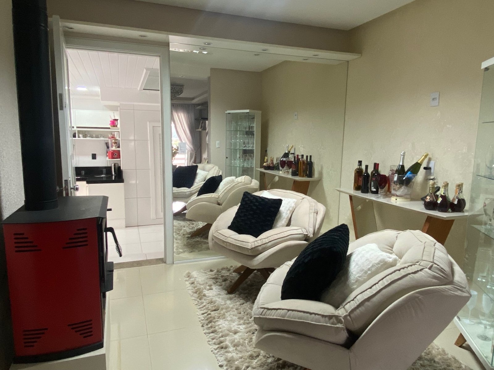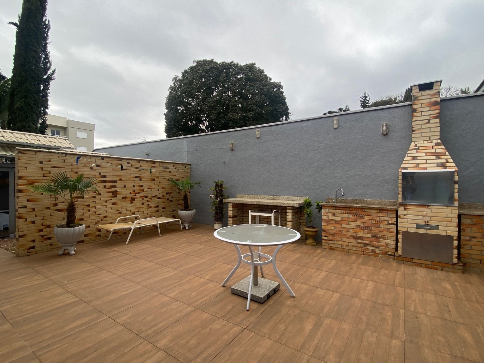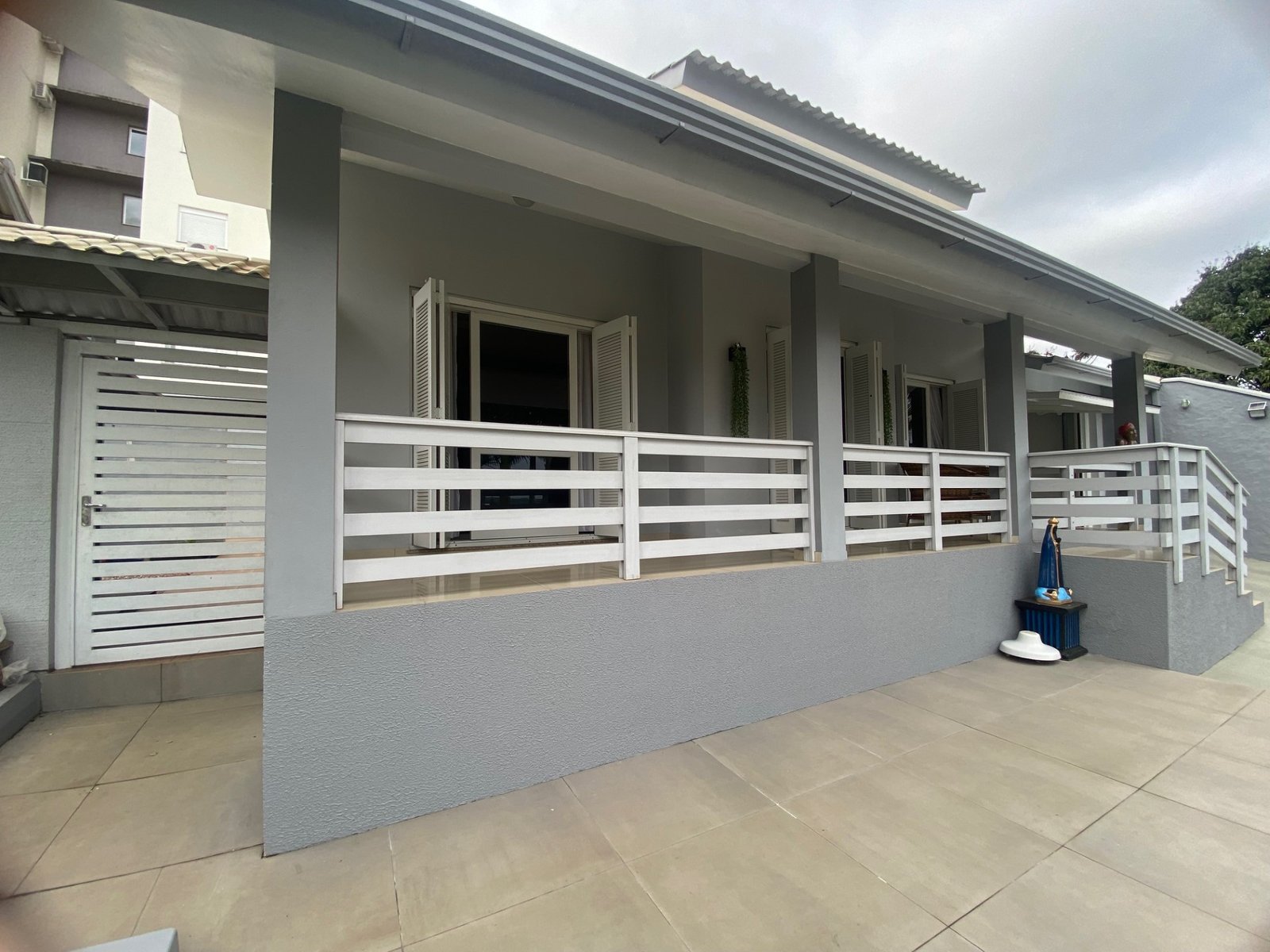 Conta com cozinha, sala de estar com sacada, dois dormitórios com sacada, sendo um suíte Master (banho com Hidro + Closet), banheiro social, área de serviço e banheiro, garagem para dois carros com churrasqueira além disso com amplo pátio.