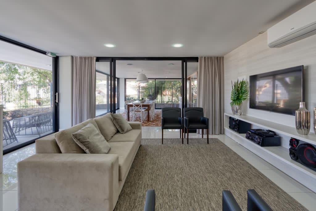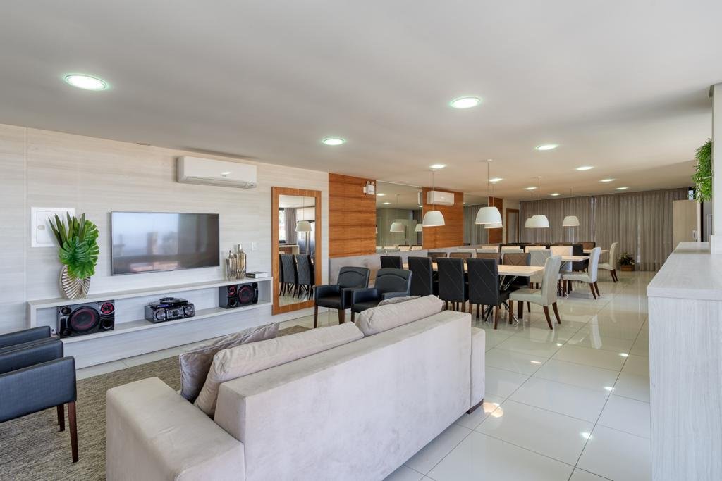 Possui 03 suítes, ampla sala e cozinha integrados, banheiros, churrasqueira, vaga para 4 carros