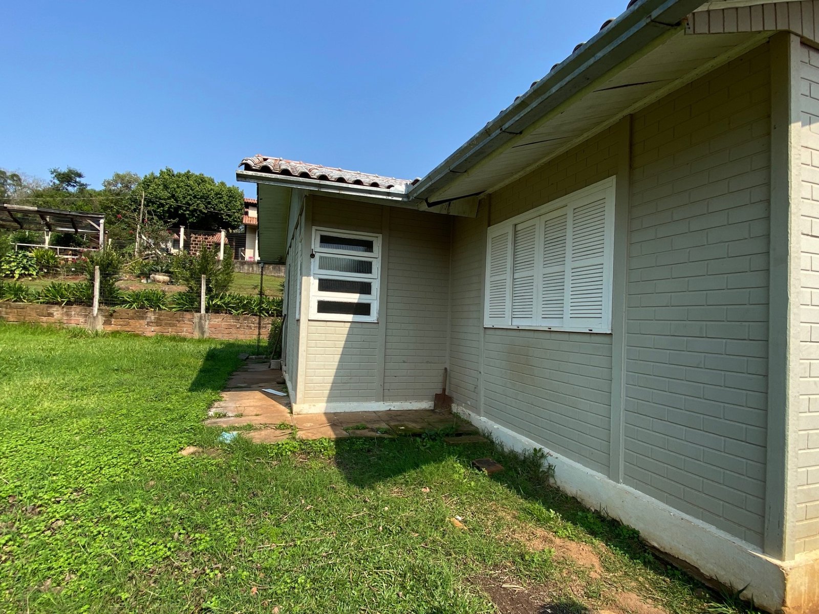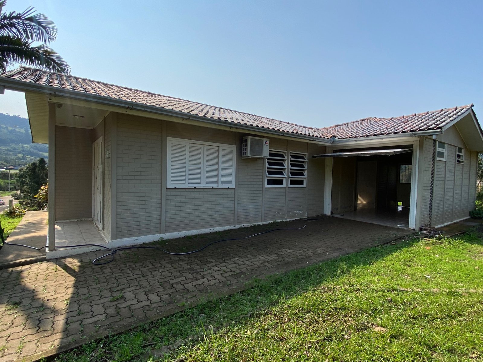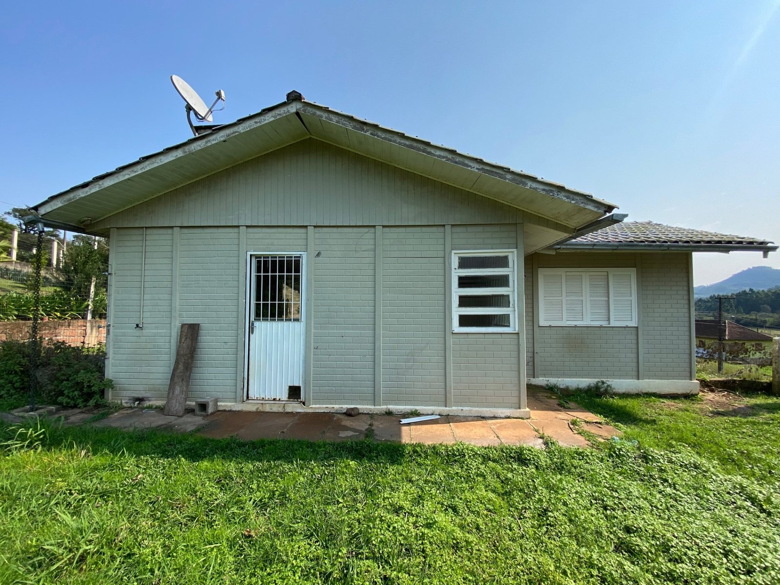 Localizada na localidade de Picada Feijão, a casa conta com três dormitórios, sala, cozinha, banheiro, garagem com churrasqueira e pátio.