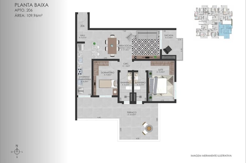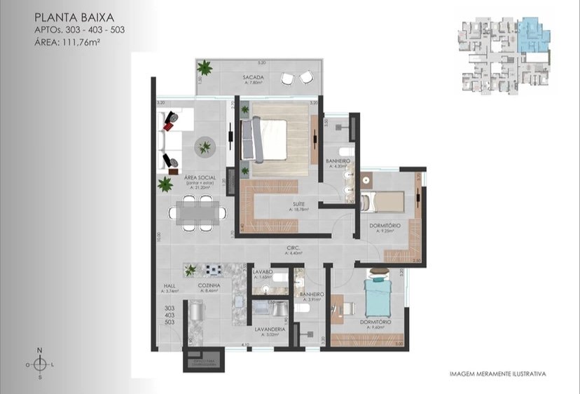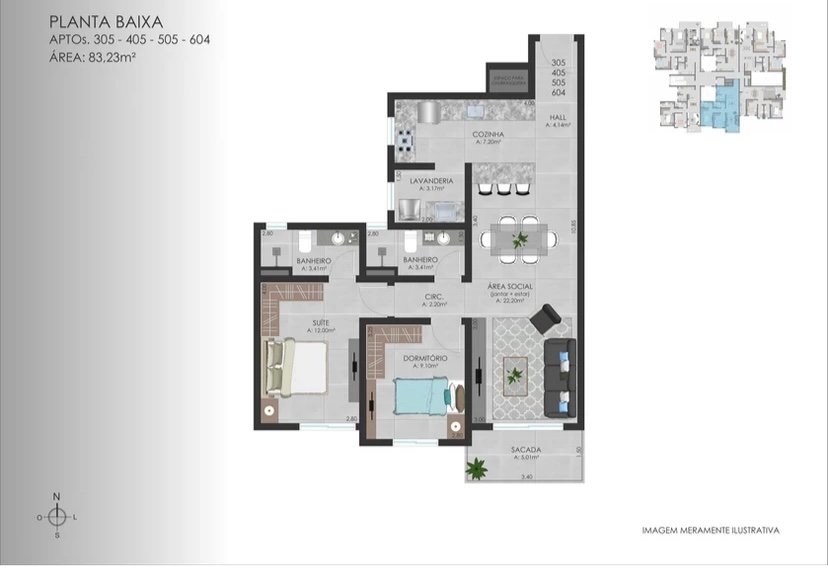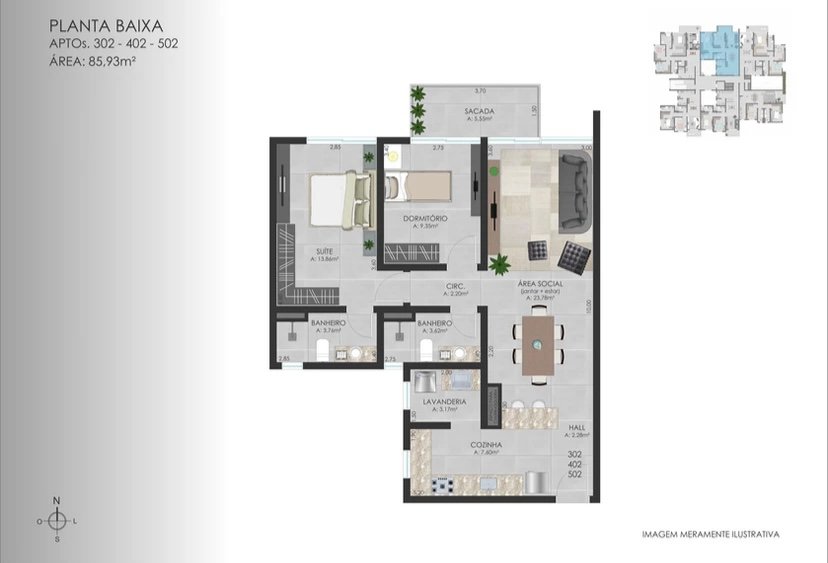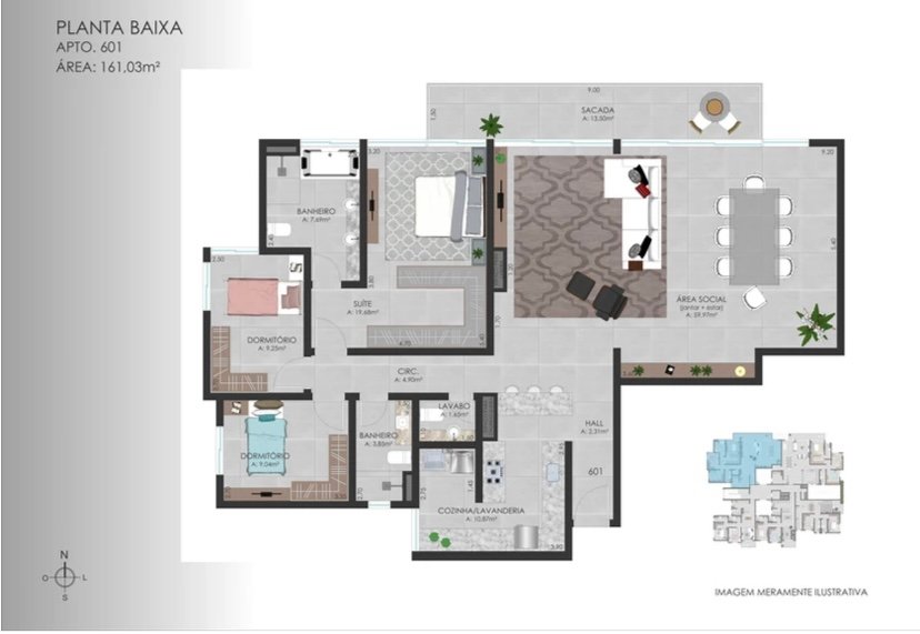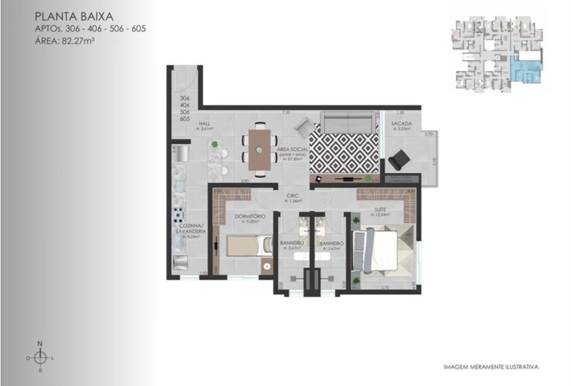 As unidades contam com 87,78 m² a 161,03 m² de área real privativa. Com apartamentos de 02 e 03 dormitórios, sendo um Suíte (algumas unidades suíte Master – banho e closet). ampla área social integrada, banheiro social, sacada e box de estacionamento para dois carros.