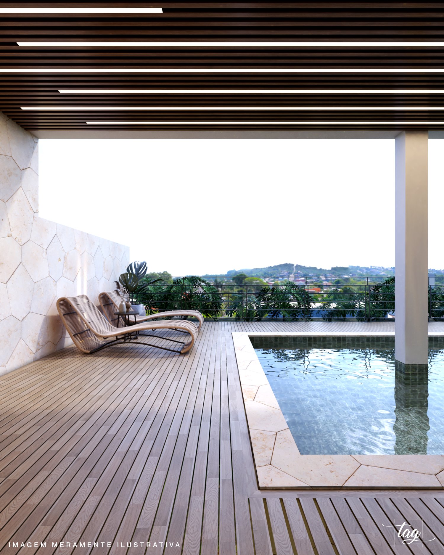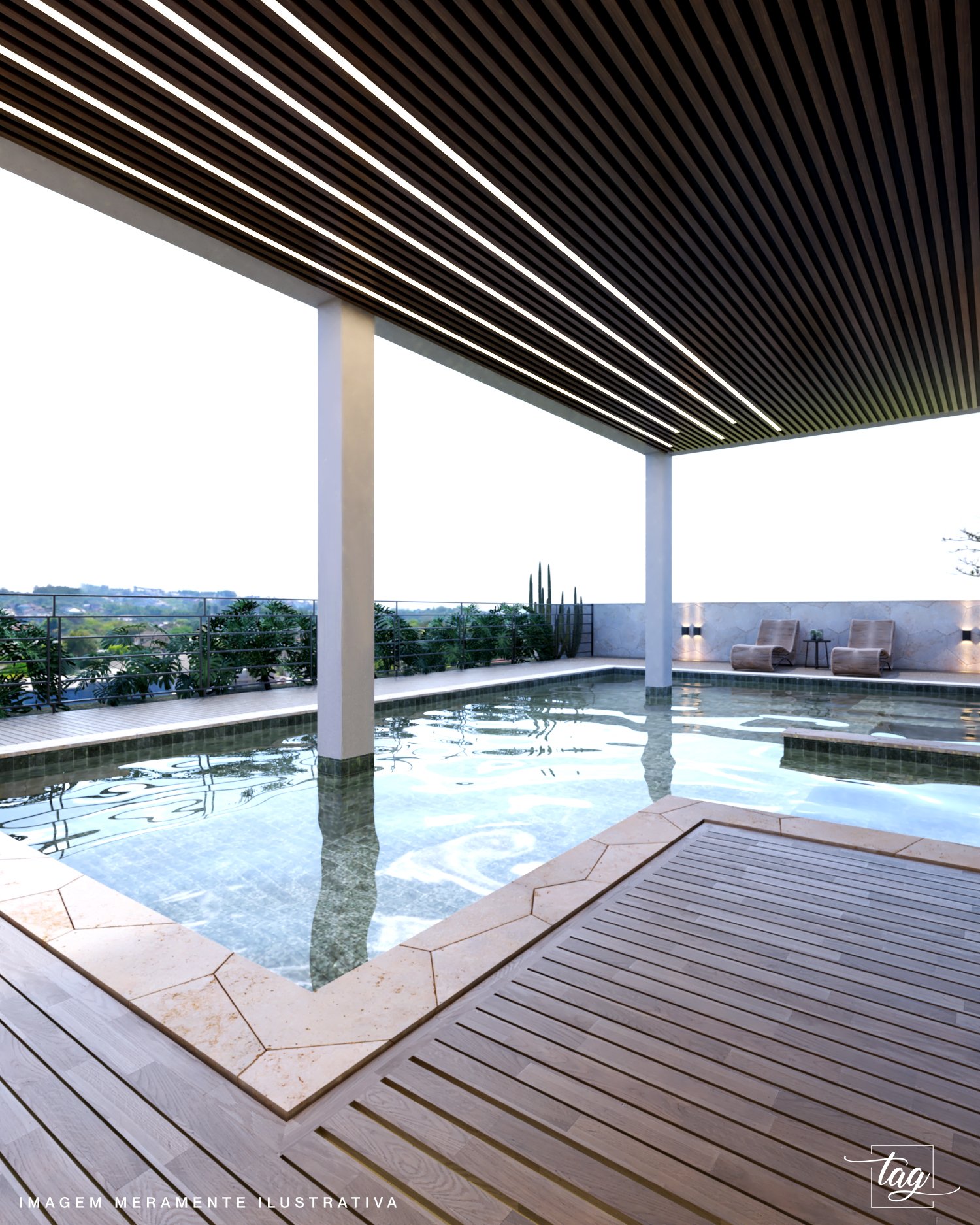 Piscina aquecida com hidromassagem e prainha