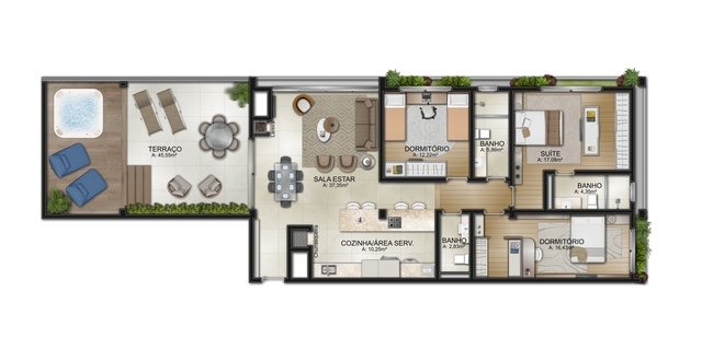 Apartamento com 02 e 03 dormitórios de 77,52 até 182,03 metros de área privativa.